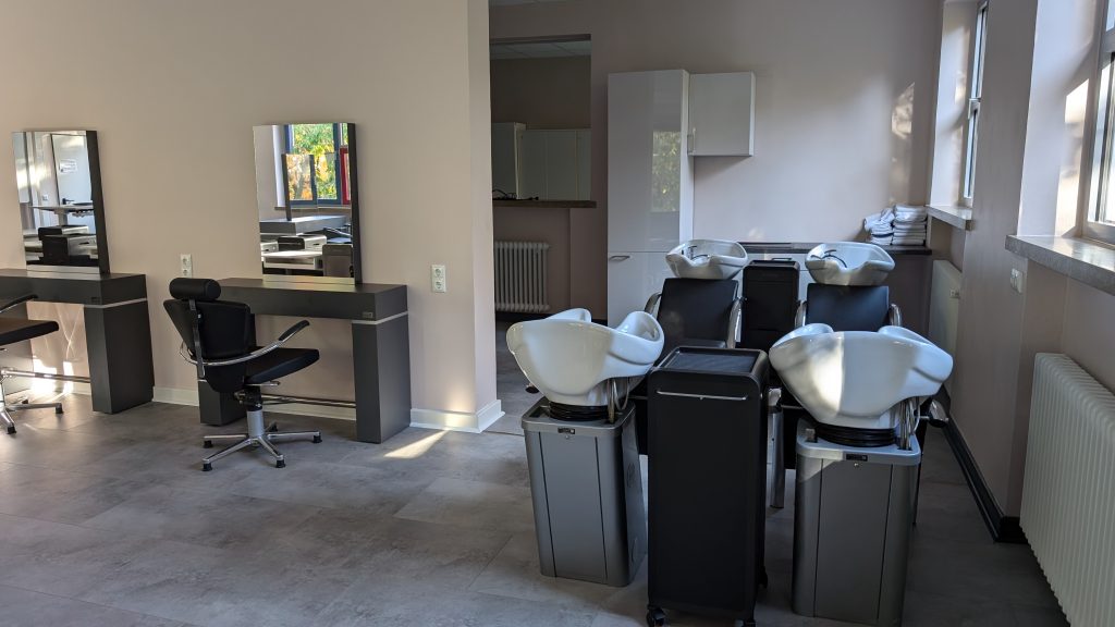 Danach konnte der neue Raum besichtigt werden. Dank der zur Verfügungstellung von Sondermitteln des Kreises Stormarn konnten neben einer neuen Beleuchtung und einem neuen Bodenbelag auch neue Bedienplätze, neue Spiegeltische und eine neue „Mixecke“ installiert werden. In der Mixecke werden die Farben für Tönung und Färbung angemischt.