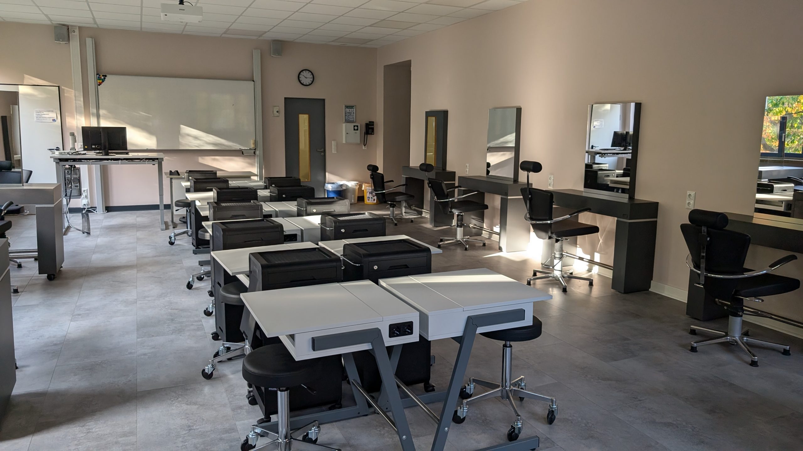 Danach konnte der neue Raum besichtigt werden. Dank der zur Verfügungstellung von Sondermitteln des Kreises Stormarn konnten neben einer neuen Beleuchtung und einem neuen Bodenbelag auch neue Bedienplätze, neue Spiegeltische und eine neue „Mixecke“ installiert werden. In der Mixecke werden die Farben für Tönung und Färbung angemischt.