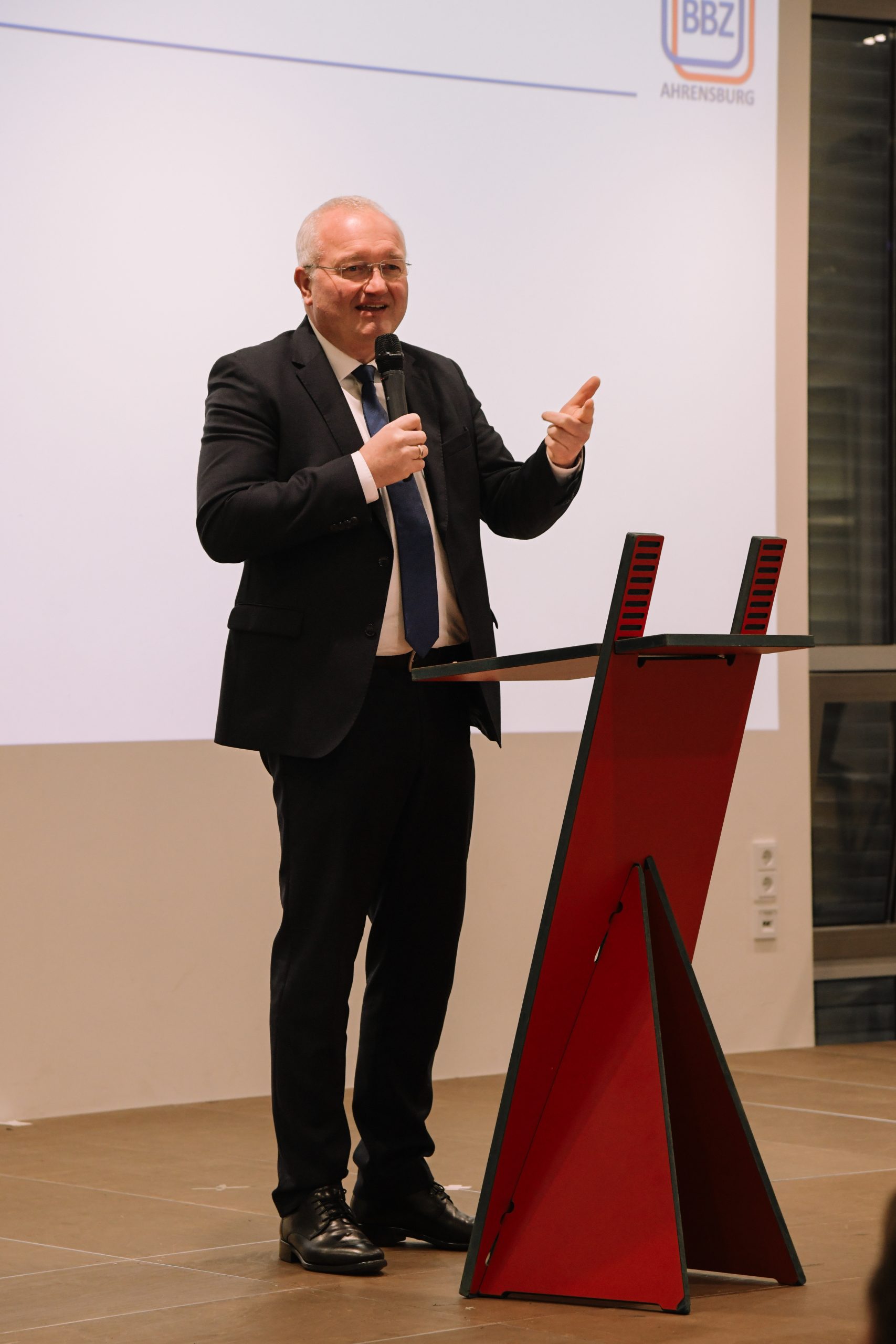Die intensiven Vorbereitungen der beiden letzten Jahre auf Seiten der Schule, der Kreispolitik, dem Kreis Stormarn als Schulträger, dem Schleswig-Holsteinischen Institut für Berufliche Bildung (SHIBB) und dem Bildungsministerium mündeten in einem Festakt, der von Schulleiter Johannes Kahlke eröffnet wurde. Die Umwandlung in ein BBZ ist schon seit einigen Jahren im Gespräch. Vor etwas über zwei Jahren kam das Vorhaben dann ins Rollen, als die Politik und die Schulgemeinschaft ihr Votum dafür ausgesprochen haben. Dasselbe gilt für die Partnerschule in Bad Oldesloe, deren Schulträger ebenfalls der Kreis Stormarn ist. Danach begannen an beiden Standorten die Vorbereitungen für die Umwandlung.