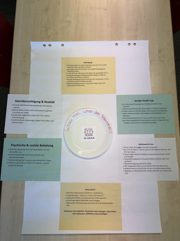 Auch wir als Schule möchten ein Zeichen setzen: In der Mensa findet ihr aktuell unser Plakat „Schau mal über den Tellerrand“. Der Teller steht symbolisch dafür, über den eigenen Tellerrand hinauszuschauen, Perspektiven zu wechseln und die Leistungen von Frauen bewusst wahrzunehmen.