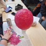 Die Schülerinnen und Schüler der Sozialpädagogischen Assistenten/-innen (SPA 2-23) hatten alle ein Lächeln auf dem Gesicht, als sie Fledermäuse, Pinguine, rosa Schweinchen, Eulen, Mike Glotzkowski, Erdbeeren, Schafe, einen Ballon und vieles mehr aus Pappe, Kleister, Luftballons, Transparentpapier und Pfeifenreiniger zu einer Laterne zusammenklebten. „Die nehmen wir mit in die KITA zum Laternelaufen“, so eine der Schülerinnen.