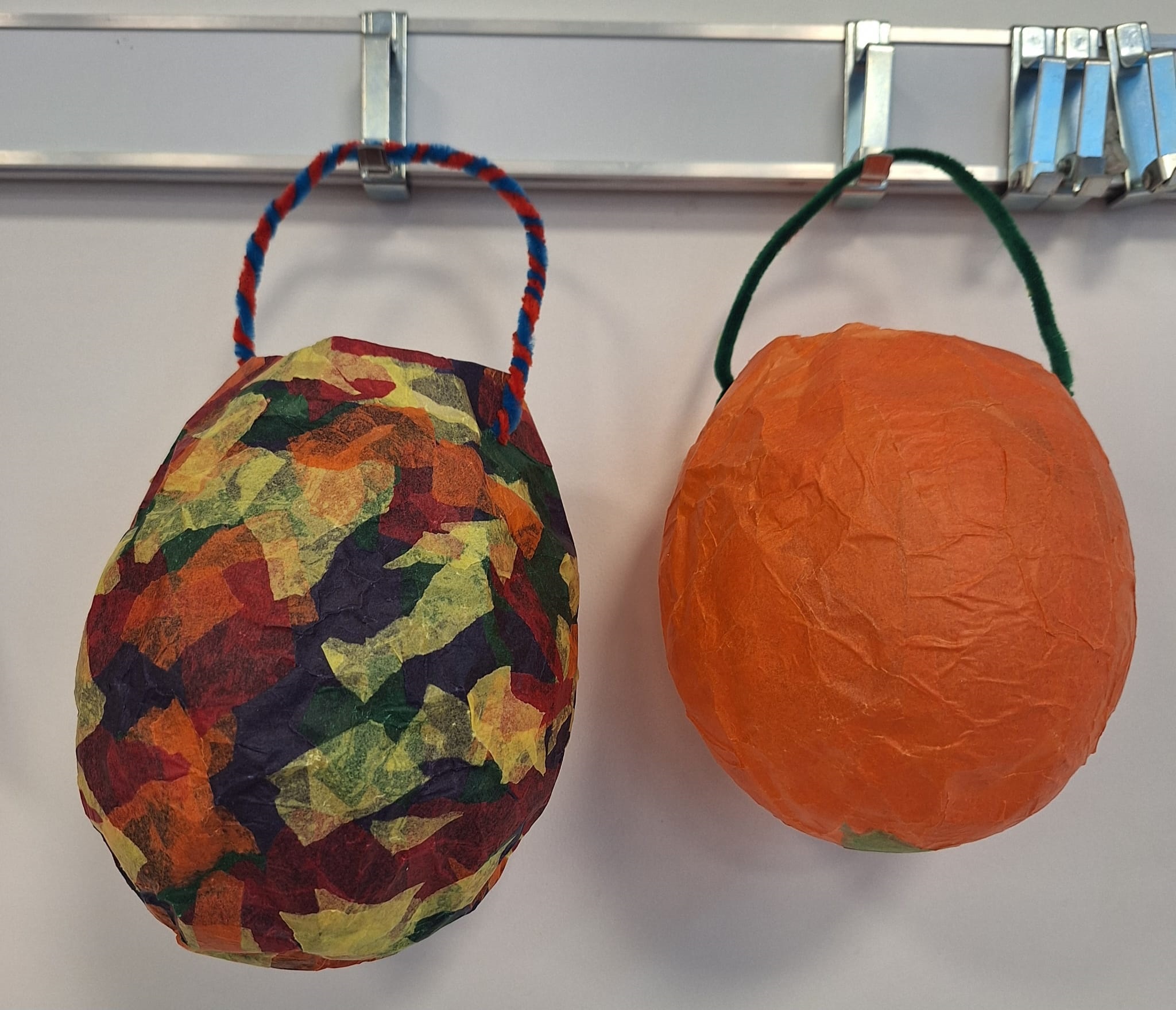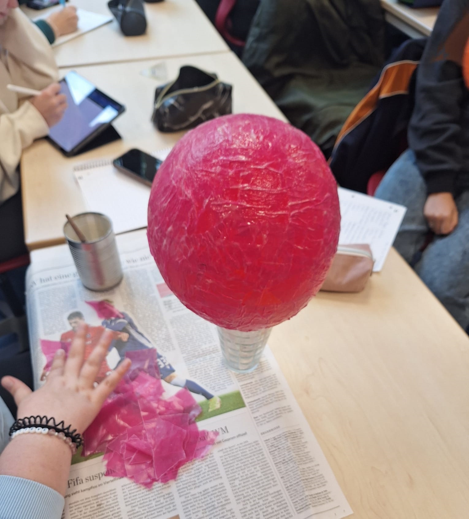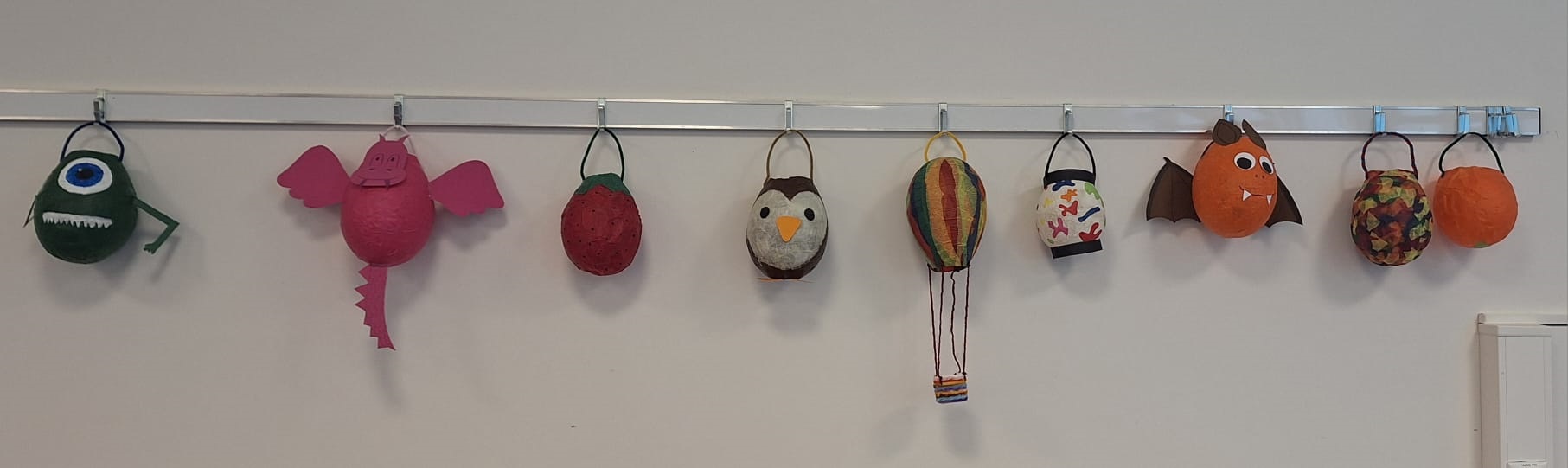 Die Schülerinnen und Schüler der Sozialpädagogischen Assistenten/-innen (SPA 2-23) hatten alle ein Lächeln auf dem Gesicht, als sie Fledermäuse, Pinguine, rosa Schweinchen, Eulen, Mike Glotzkowski, Erdbeeren, Schafe, einen Ballon und vieles mehr aus Pappe, Kleister, Luftballons, Transparentpapier und Pfeifenreiniger zu einer Laterne zusammenklebten. „Die nehmen wir mit in die KITA zum Laternelaufen“, so eine der Schülerinnen.