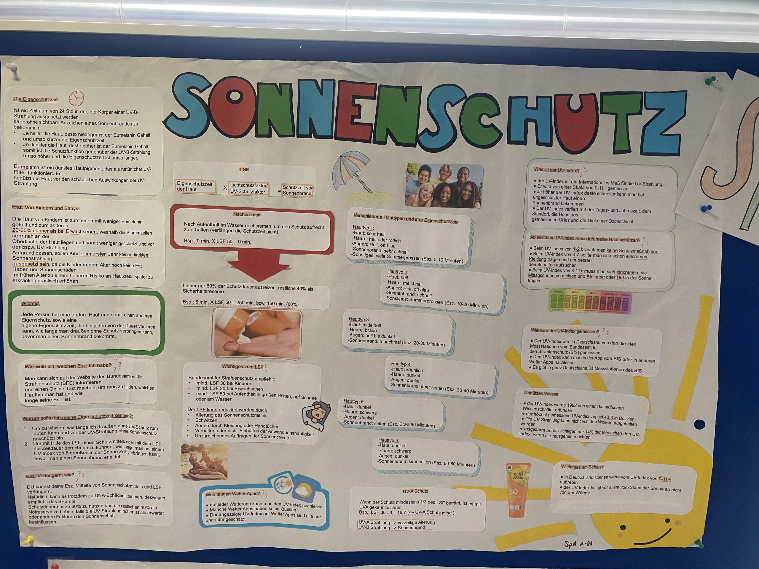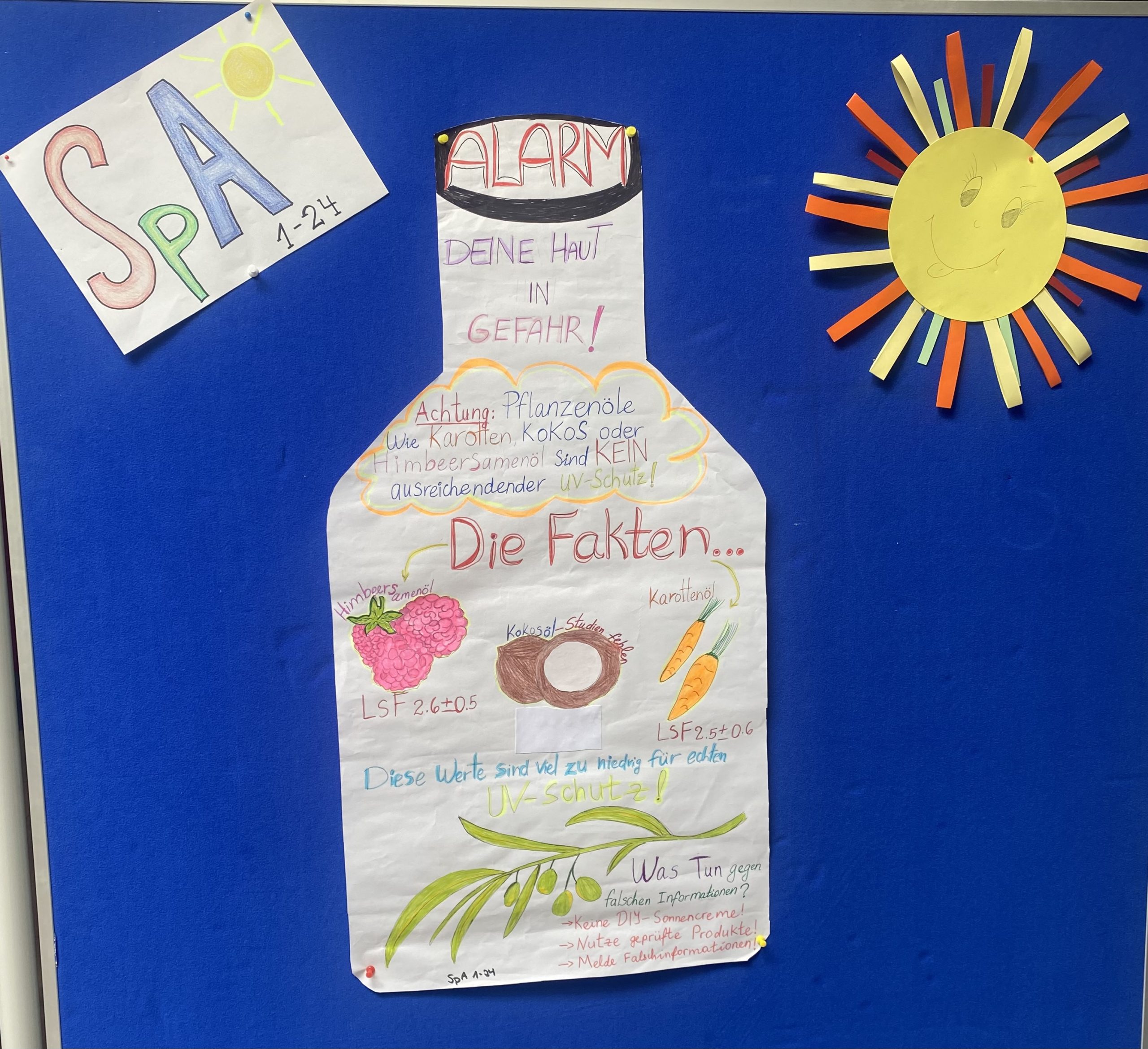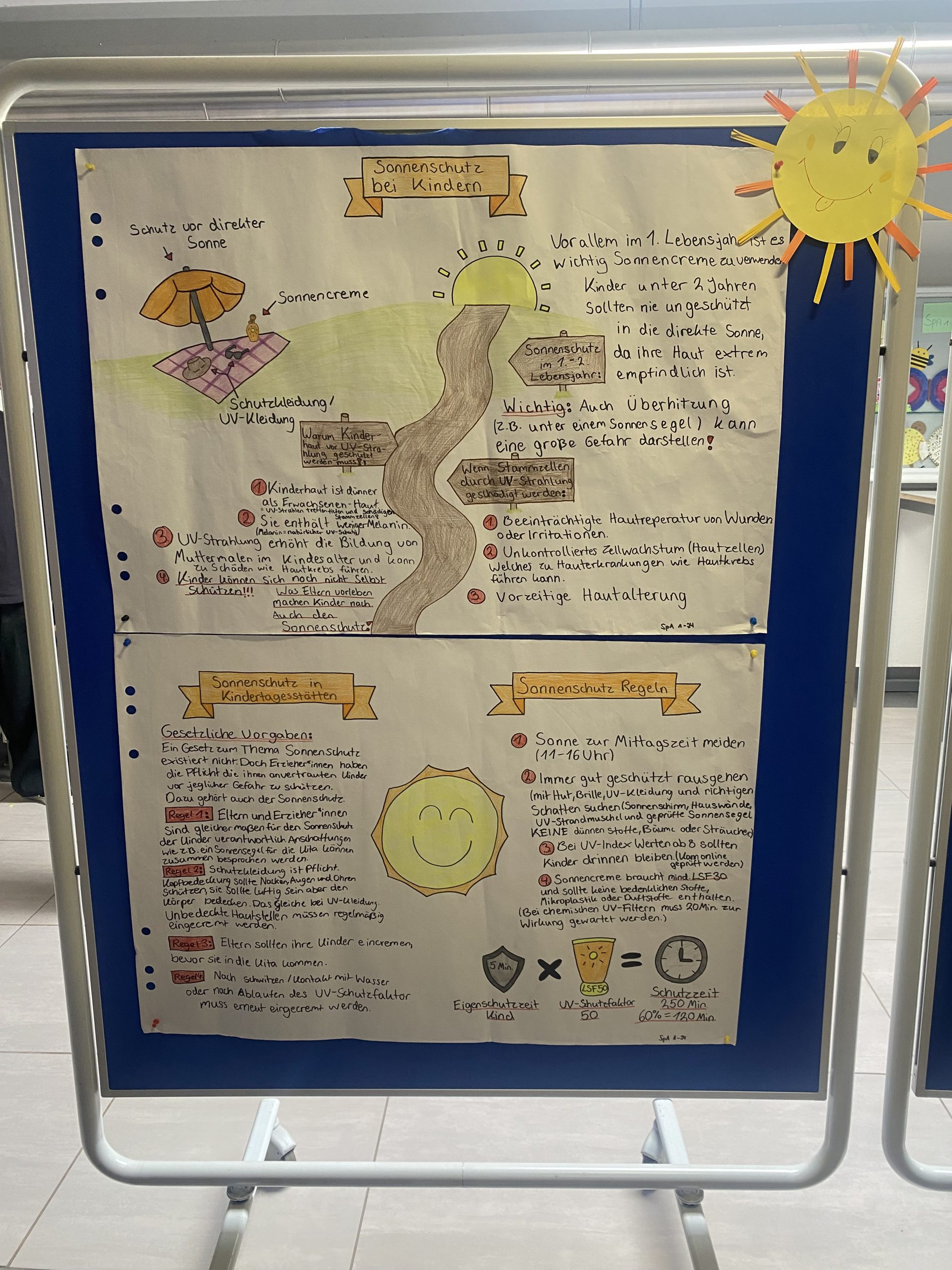 Die entstandenen Plakate liefern auch über die SPA-Ausbildung hinaus für alle Schülerinnen und Schüler relevante Informationen. Denn UV-Schutz ist kein reines Kita-Thema. Er betrifft uns alle: als junge Erwachsene, als Eltern, Geschwister oder Freunde!