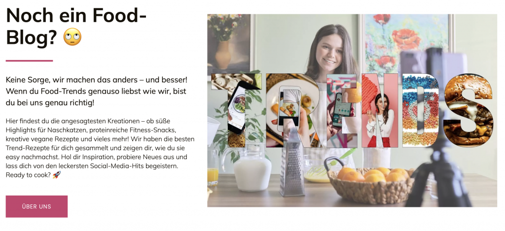 Um das alles nicht nur theoretisch zu lernen, haben wir im Unterricht eigene Webseiten in Form eines Blogs gebaut. In drei Gruppen erstellten wir Seiten zu verschiedenen Themen: zweimal Travel und einmal Food. Jede Gruppe übernahm dabei alle Aufgaben selbst – vom Konzept über das Design bis hin zur Umsetzung und SEO-Optimierung.